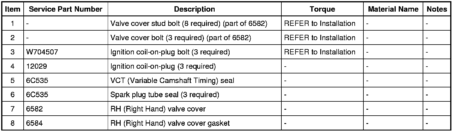 Apply an 8 mm (0.315 in) bead of Motorcraft(R) High Performance Engine RTV Silicone to the engine front cover-to- RH (Right Hand) cylinder head joints.