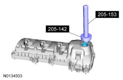 Using 205-142 (T80T-4000-J) and 205-153 (T80T-4000-W) install the new VCT (Variable Camshaft Timing) seal(s).