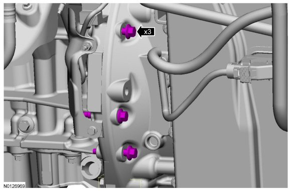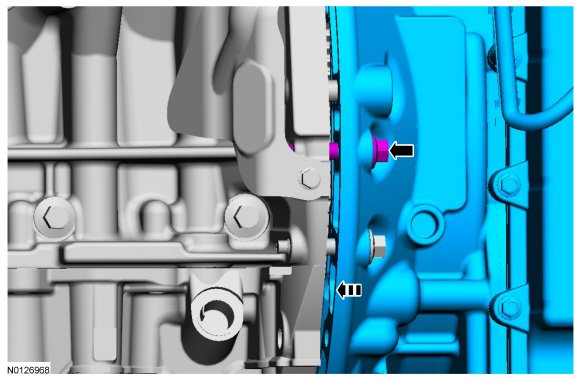 16. Tighten the 3 LH (Left Hand) bellhousing-to-engine bolts.