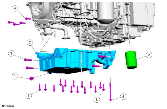 11. Install the remaining oil pan bolts and tighten in the sequence shown.