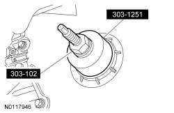 Using the 303-102 (T74P-6316-B) and 303-335 (T88T-6701-A) , install the crankshaft pulley.