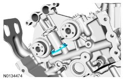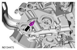 18. NOTICE: Do not use excessive force when installing the VCT (Variable Camshaft Timing) oil control solenoid. Damage to the mega cap could cause the cylinder head to be inoperable. If difficult to install the VCT (Variable Camshaft Timing) oil control solenoid, inspect the bore and VCT (Variable Camshaft Timing) oil control solenoid to ensure there are no burrs, sharp edges or contaminants present on the mating surface. Only clean the external surfaces as necessary.