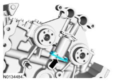 13. Remove and discard the LH (Left Hand) secondary timing chain tensioner shipping clip.