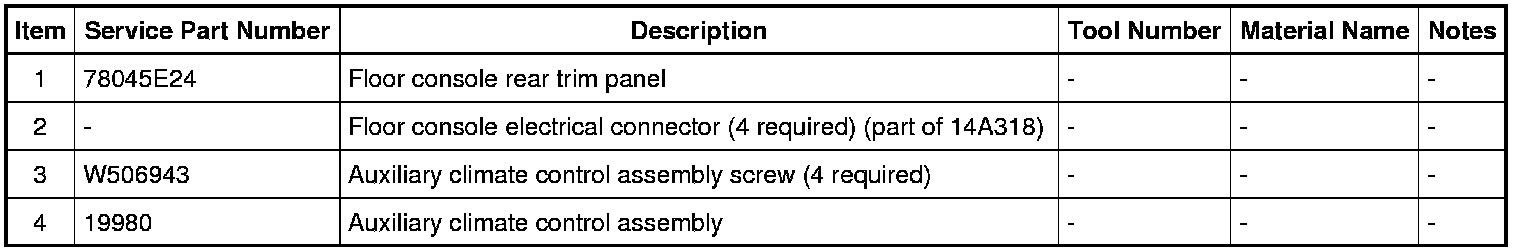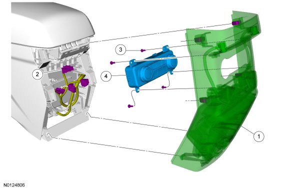 1. Detach the 4 floor console rear trim panel clips and remove the floor console rear trim panel.