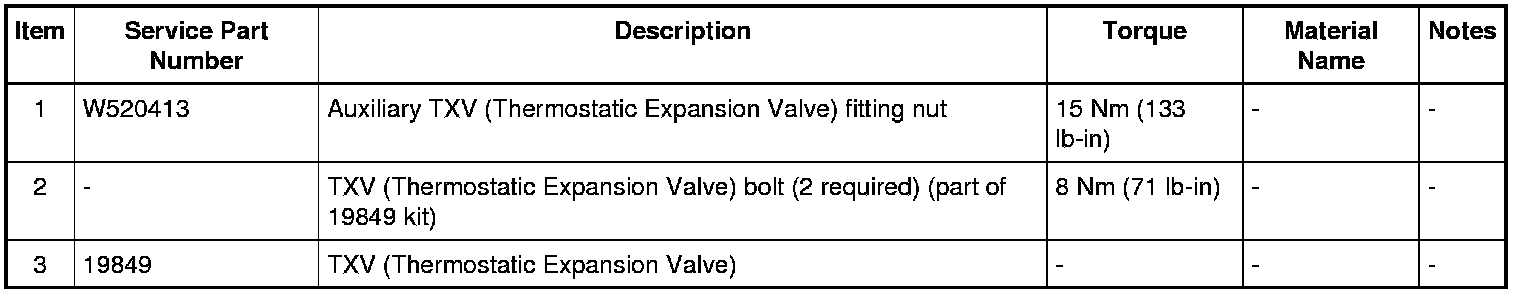 4. Remove the 2 auxiliary TXV (Thermostatic Expansion Valve) bolts and the auxiliary TXV (Thermostatic Expansion Valve).