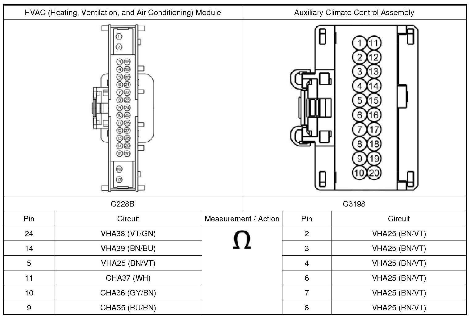 1. Disconnect: HVAC (Heating, Ventilation, and Air Conditioning) Module C228B.