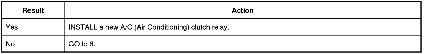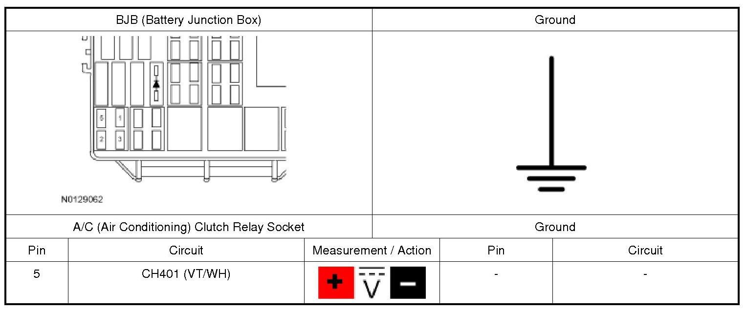 1. Using a known good A/C (Air Conditioning) clutch relay, check the A/C (Air Conditioning) compressor clutch for correct operation.