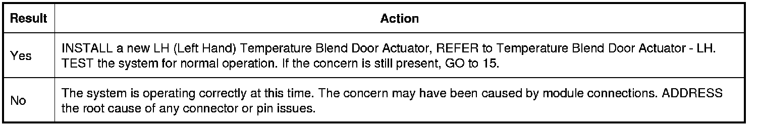 14. CHECK FOR CORRECT LH (Left Hand) TEMPERATURE BLEND DOOR ACTUATOR OPERATION