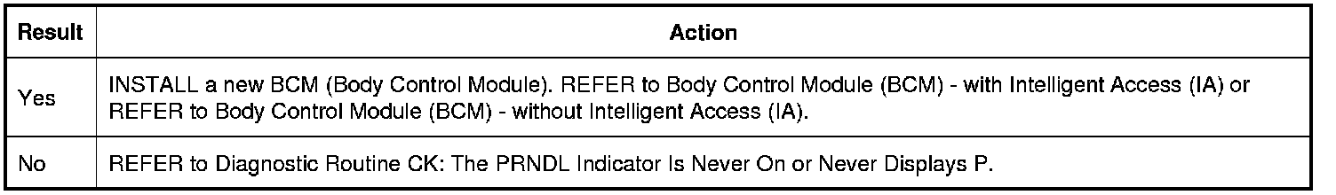 3. Shift the vehicle in and out of PARK (P) while monitoring the PRNDL P indication.