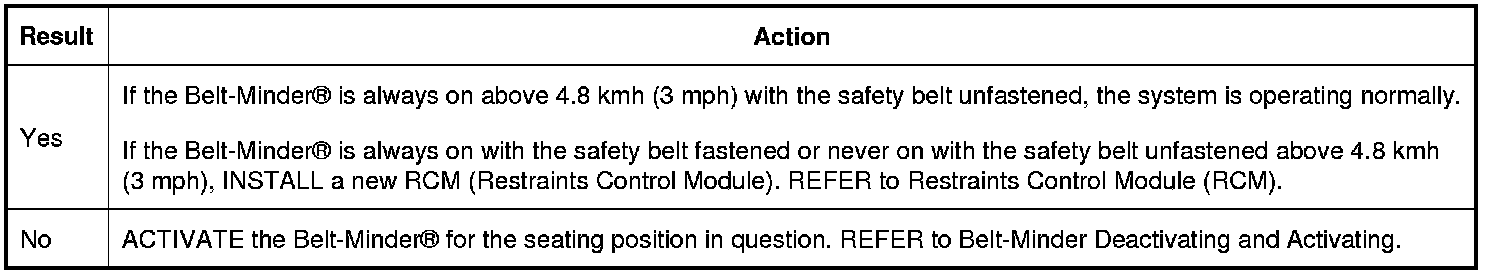 Verify the Belt-Minder(R) is activated or configured on for the seating position in question. REFER to Belt-Minder Deactivating and Activating Testing and Inspection.