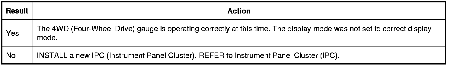 1. On the optional IPC (Instrument Panel Cluster), in the display mode menu, press the LH (Left Hand) steering wheel switch to the right to display the 4WD (Four-Wheel Drive) gauge.