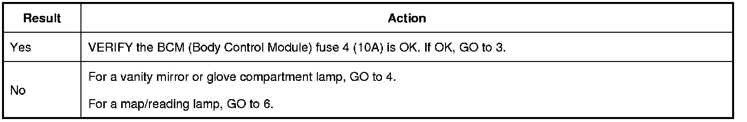 1. Check the operation of all the demand (map and vanity mirror) lamps.