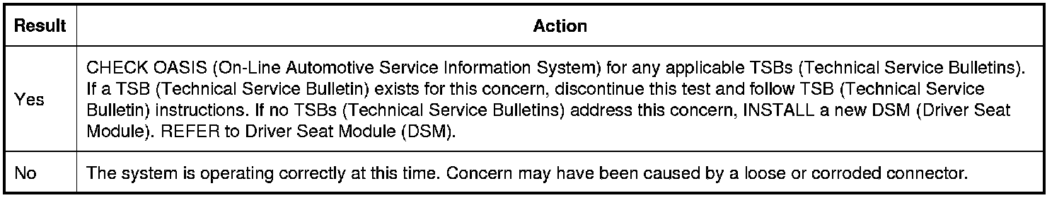 4. CHECK FOR CORRECT DSM (Driver Seat Module) OPERATION