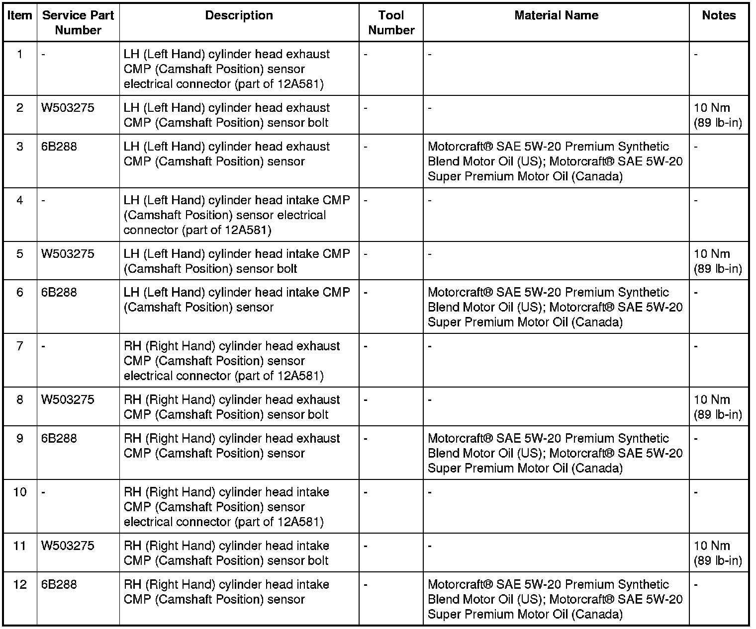 1. NOTE: Lubricate the CMP (Camshaft Position) sensor O-ring seal with clean engine oil before installing the CMP (Camshaft Position) sensor.