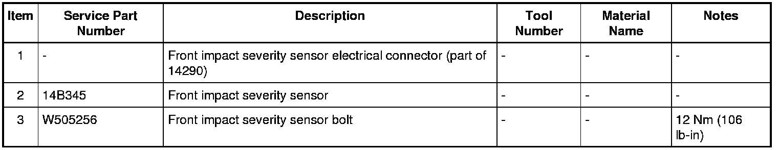 1. NOTE: Make sure the front impact severity sensor mating surfaces are clean and free of foreign material.