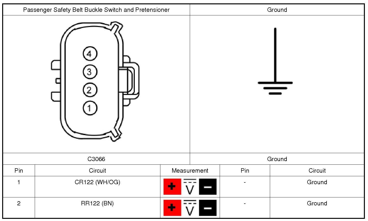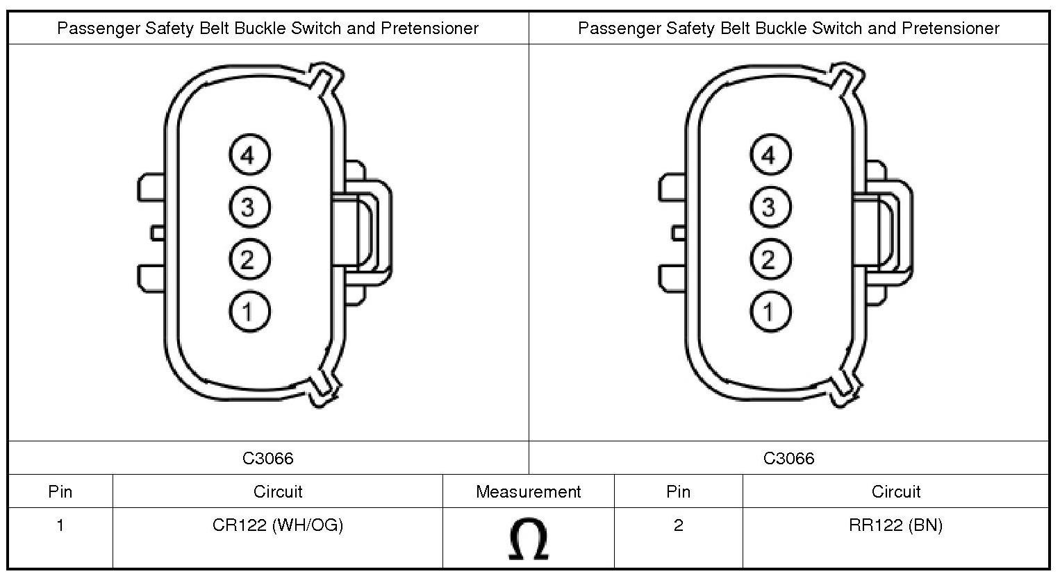 4. Connect Passenger Safety Belt Buckle Switch and Pretensioner C3066 (if previously disconnected).