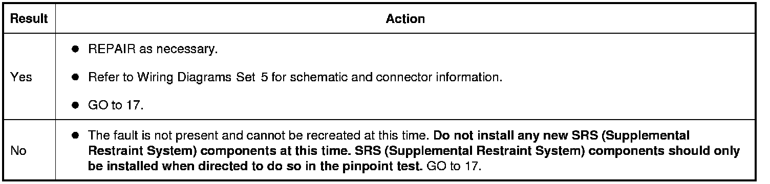 NOTE: Only disconnect or reconnect SRS (Supplemental Restraint System) components when instructed to do so within a pinpoint test step. Failure to follow this instruction may result in incorrect diagnosis of the SRS (Supplemental Restraint System).