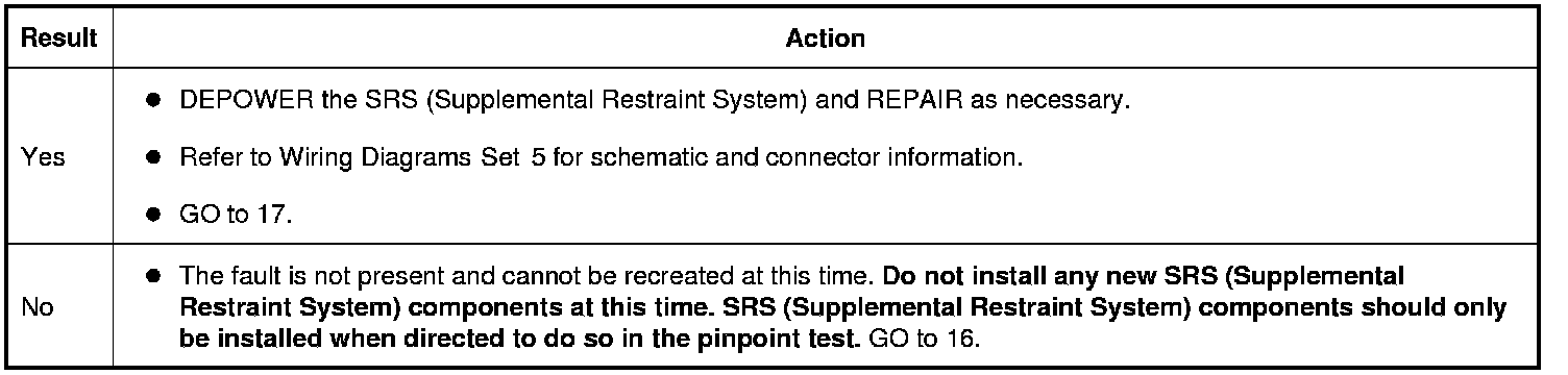 3. If previously directed to depower the SRS (Supplemental Restraint System), repower the SRS (Supplemental Restraint System). Do not prove out the SRS (Supplemental Restraint System) at this time. REFER to Supplemental Restraint System (SRS) Depowering and Repowering - with Intelligent Access (IA) or REFER to Supplemental Restraint System (SRS) Depowering and Repowering - without Intelligent Access (IA) .
