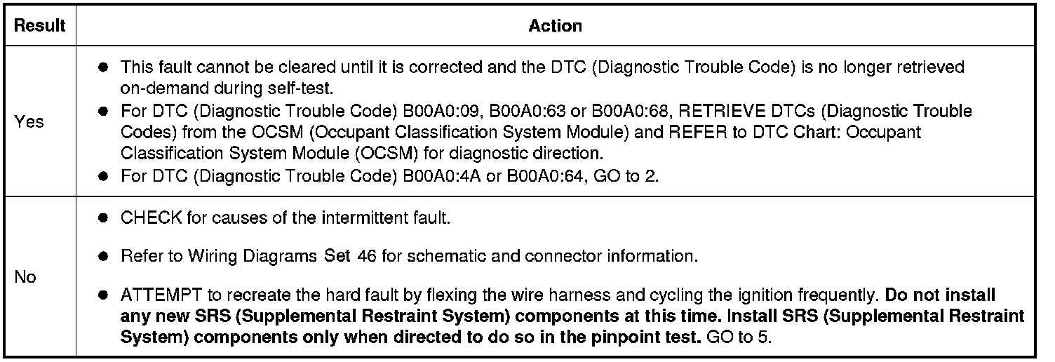 6. When selecting Restraints from the Self Test menu, DTCs (Diagnostic Trouble Codes) are retrieved from the RCM (Restraints Control Module) and OCSM (Occupant Classification System Module).