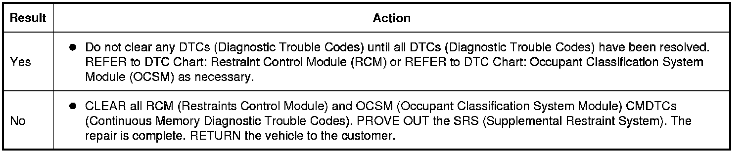NOTE: The SRS (Supplemental Restraint System) must be fully operational and free of faults before releasing the vehicle to the customer.