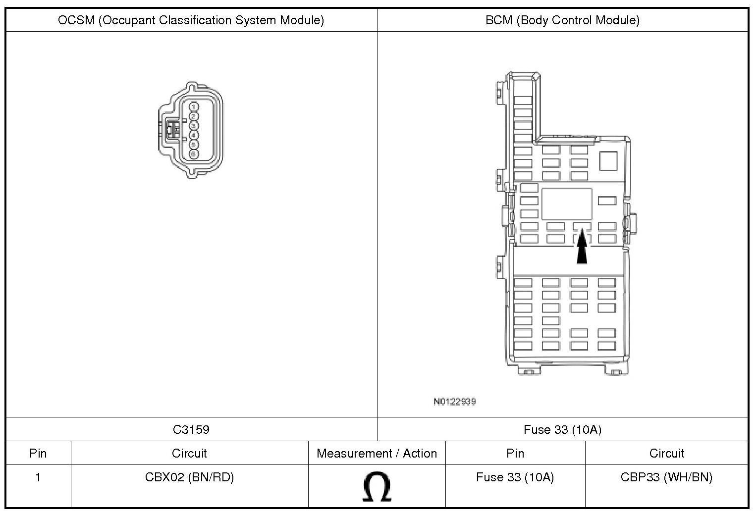 - For the OCSM (Occupant Classification System Module), disconnect C3159.