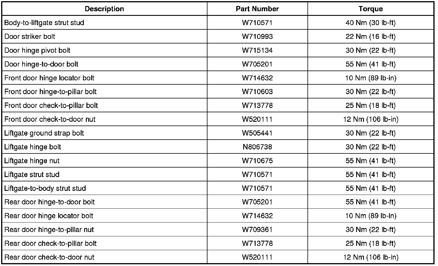 Torque Specifications