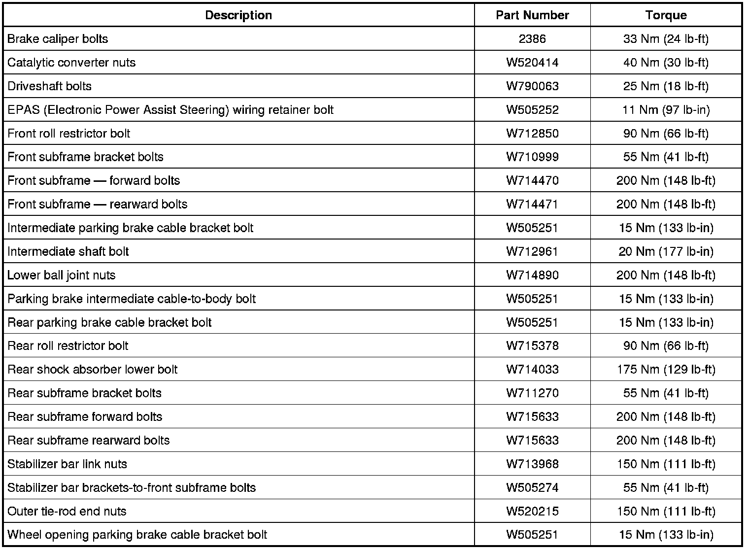 Torque Specifications