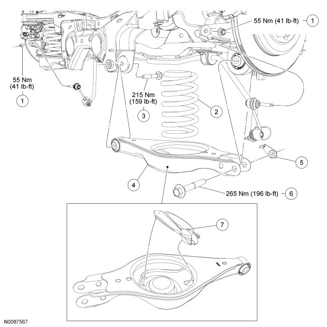 8. Remove and discard the lower arm-to-subframe bolt and remove the lower arm.