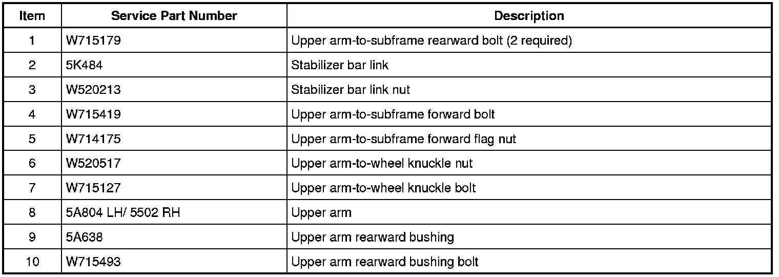 14. If service to the upper arm rearward bushing is required, remove and discard the upper arm bushing bolt and remove the upper arm bushing.