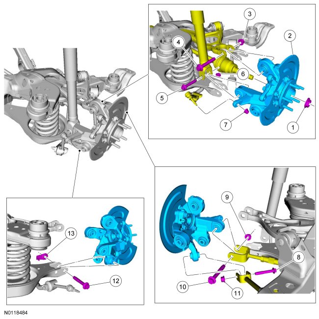 12. Tighten the trailing arm-to-wheel knuckle nut.