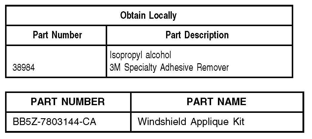 1. Remove and discard windshield appliques, refer to Workshop Manual (WSM), Section 501-08.