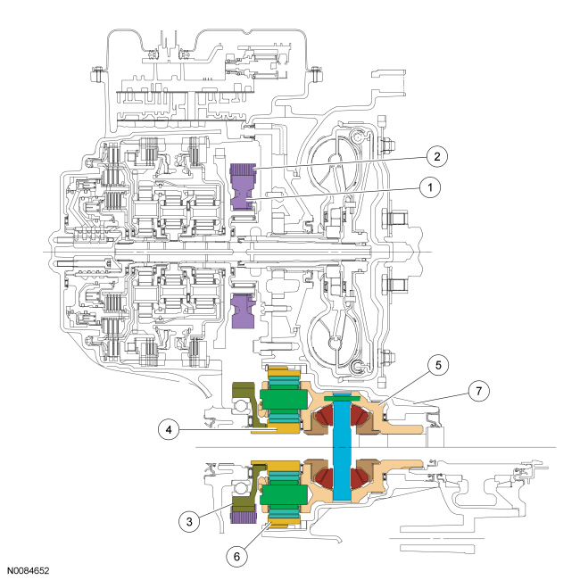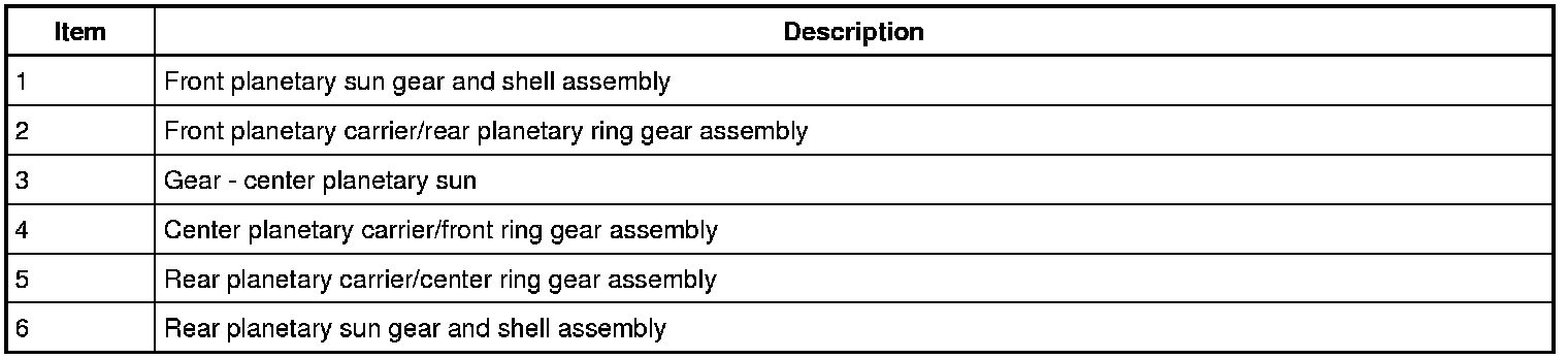 The center planetary ring gear is splined to the rear planetary carrier and transfers power from the center planetary gearset to the rear planetary gearset in 3rd gear, from the rear planetary gearset to the center planetary gearset in 4th gear and is held stationary by the low OWC (One-Way Clutch) and low/ reverse clutch in 1st gear and reverse.