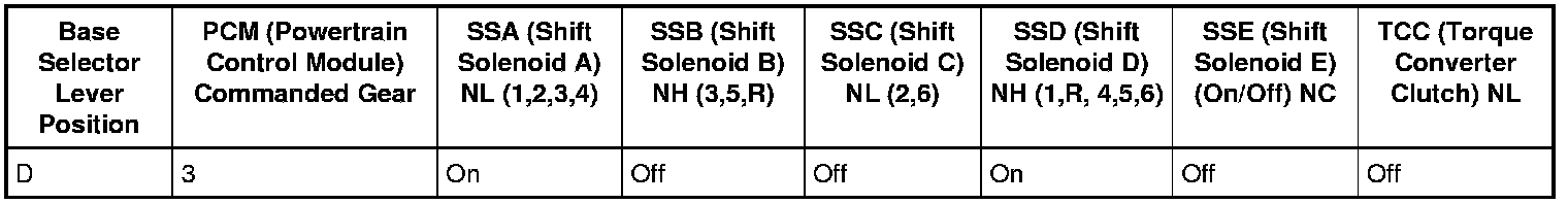 3rd Gear Solenoid Operation Chart