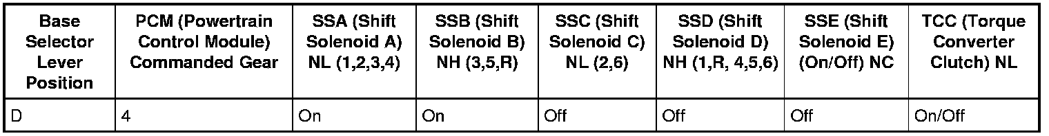 4th Gear Solenoid Operation Chart