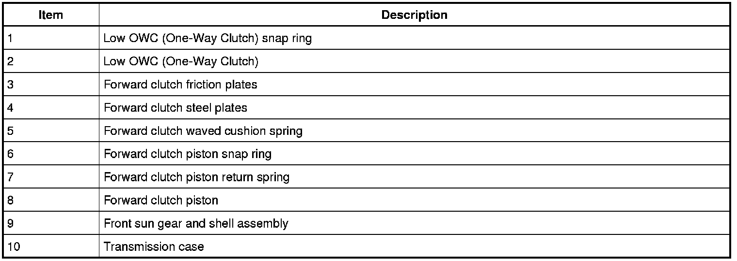 The forward clutch is a brake clutch that holds the front sun gear and shell assembly. The forward clutch is applied in 1st, 2nd, 3rd and 4th gear.