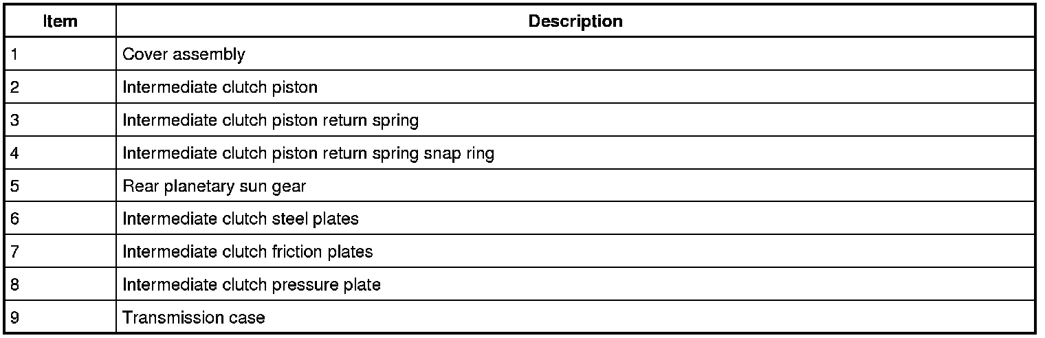The intermediate clutch is a brake clutch that holds the rear sun and shell assembly. The intermediate clutch is applied in 2nd and 6th gear.