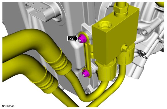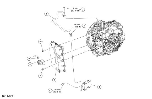 9. Tighten the transmission mounted transmission fluid cooler tube fitting.