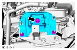 4. Remove the 2 transmission support insulator nuts and the TCM (Transmission Control Module) bracket bolt and remove the TCM (Transmission Control Module) support bracket.