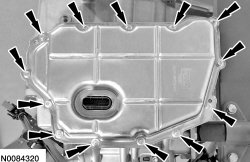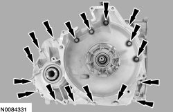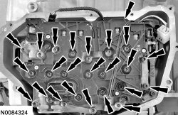 Remove the 17 torque converter housing bolts.