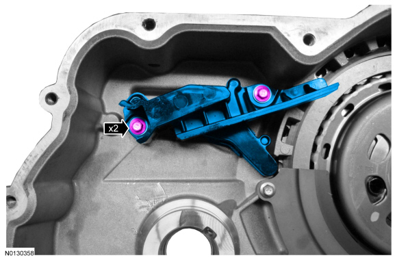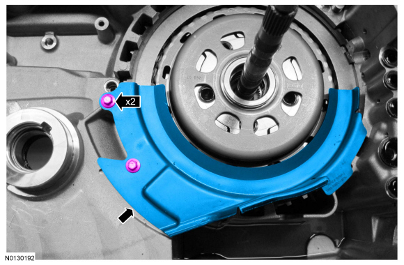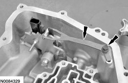 40. Remove the 2 bolts and the transmission fluid baffle.