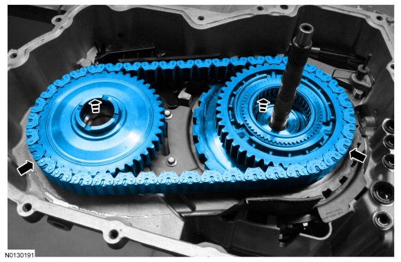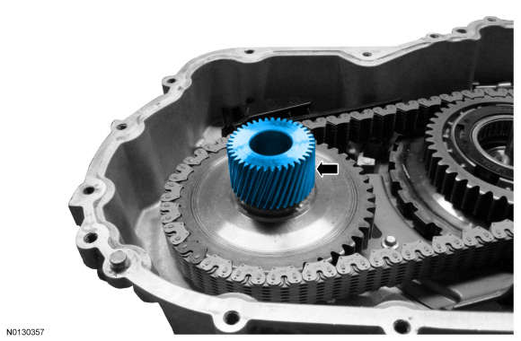 35. Install the drive sprocket on the front planetary hub/park gear assembly and install the snap ring.