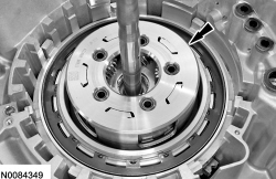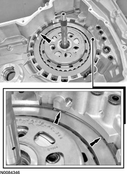 - Inspect the forward (1, 2, 3, 4) clutch pressure plate and clutch assembly surface for damage or excessive wear and install new, if necessary.