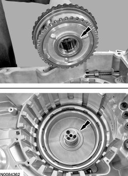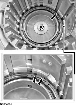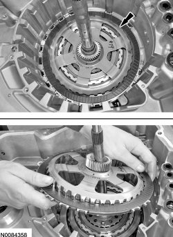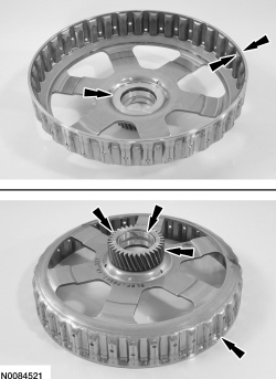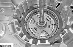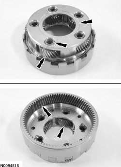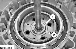 61. Inspect the intermediate (2, 6) clutch surface for damage. If the surface is burned or worn excessively, install a new OWC (One-Way Clutch).