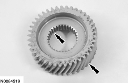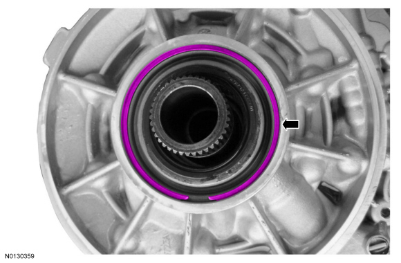 80. NOTICE: If the LH (Left Hand) transmission case bushing or the LH (Left Hand) halfshaft bushing surface shows signs of excessive wear or damage, a new LH (Left Hand) transmission case bushing and a new LH (Left Hand) halfshaft must be installed, or excessive noise or transmission failure can occur.