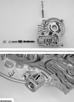 101. NOTE: TCC (Torque Converter Clutch) control valve retainer shown assembled in the pump body, main pressure regulator valve retainer similar.