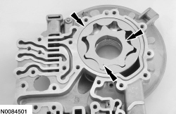 102. NOTE: The dot on the inner pump gear faces up.