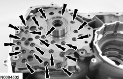 103. Position the stator support on the pump housing and install the 23 pump bolts hand-tight.