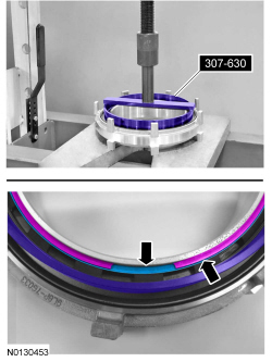 137. Install 307-578 /3 on the clutch support tower and adjust 307-578 /3 to align the bottom edge of the tool with the top edge of the bottom Teflon(R) seal groove.