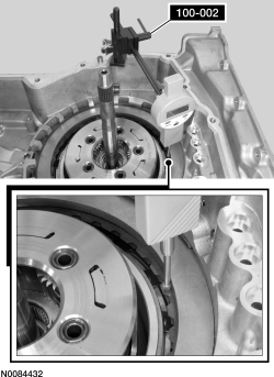259. Forward Clutch Measurement - Install 100-002 (TOOL-4201-C) or a dial indicator on the transmission case and position the plunger on the top forward (1, 2, 3, 4) clutch friction plate.