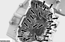 296. Tighten the main control-to-transmission case bolts and the main control nut in a crisscross pattern.